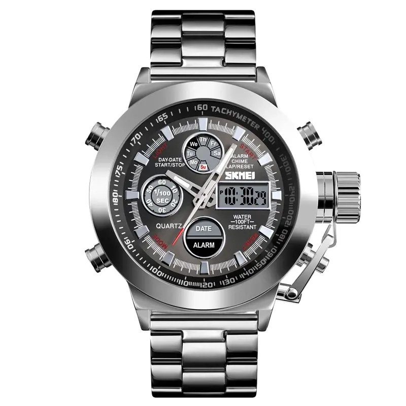 ساعت مچی عقربه‌ای مردانه اسکمی مدل 1515S-NP  یکی از گزینه‌های جذاب و کاربردی در دسته ساعت‌های کژوال به شمار می‌آید. این ساعت با طراحی مدرن و کلاسیک خود، نظر هر فردی را به خود جلب می‌کند. رنگ صفحه نوک مدادی که در ترکیب با بدنه نقره‌ای خود بافتی شیک و مردانه به ارمغان می‌آورد، آن را برای استفاده روزمره و همچنین در مناسبت‌های غیررسمی مناسب می‌سازد. با قطر صفحه ۵۷ میلی‌متر و ضخامت ۱۷ میلی‌متر، این ساعت به راحتی روی مچ دست قرار می‌گیرد و علاوه بر زیبایی، حس اعتماد به نفس را نیز به کاربر منتقل می‌کند.